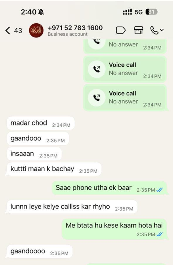 Please refer to the attached screenshots to see the abusive and unprofessional language used after we requested our payment.